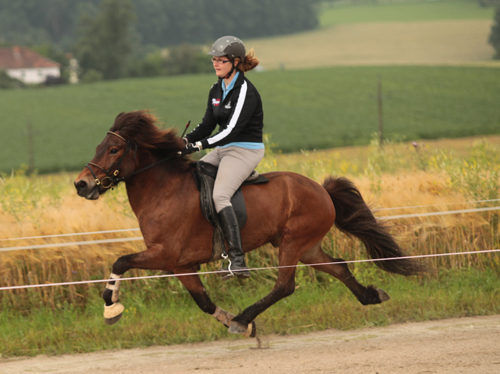 Jungpferdebeurteilung 2014: Bewegungsstarker, energischer Junghengst mit hochweiten, lockeren Bewegungen, sehr guter Köperbalance und deutlicher 5-Gangveranlagung, bei viel natürlichem Tölt.